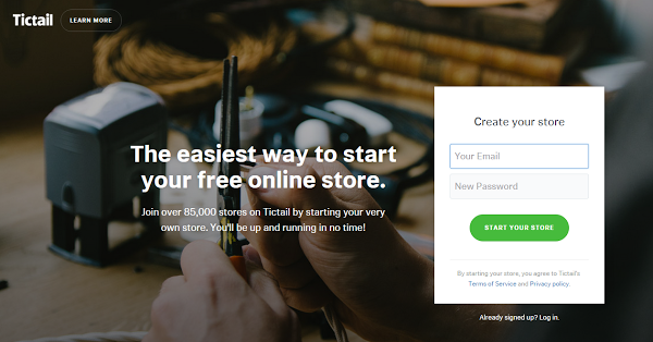 Paso 1. Lo primero que tienes que hacer es ir a Tictail y pinchas en el botón azul para crear cuenta (start your free online store)