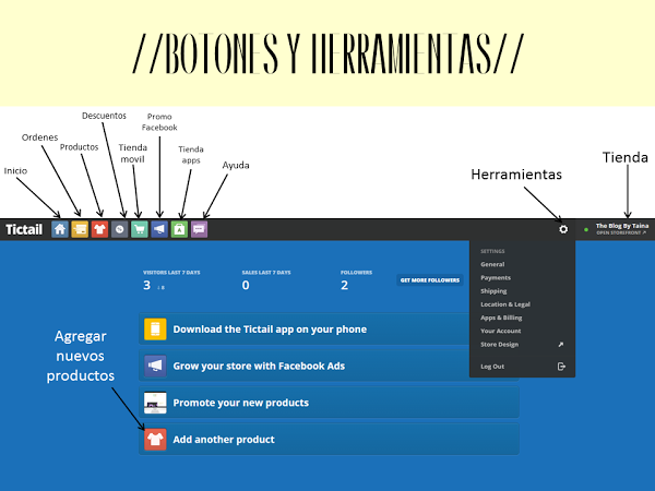Herramientas: Te permite gestionar la información de la tienda, como descripción, nombre, URL, imagen, email de contacto, activar la forma de pago, crear la descripción de forma de envió, manejar la locación, y la política de términos y condiciones, etc.