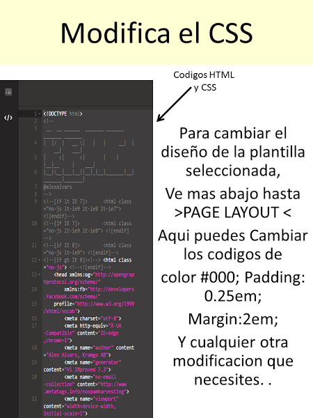 Como te decía yo vendo mis plantillas pre-diseñada en una plataforma que me permite elegir un diseño prediseñado y me da la opción de poder editarlo mediante códigos HTML y CSS, si tienes un poco de conocimiento no te resultada complicado dar unos pequeños retoques.