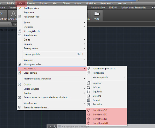 Y activaremos la vista 3D desde VER – PUNTO DE VISTA 3D y seleccionamos cualquier vista ISOMÉTRICA.