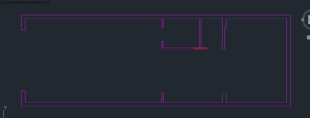 Como podéis comprobar encontramos que al trabajar por capas tenemos delineado nuestro plano con diferentes colores de líneas, que como sabemos nos ayudan a diferenciar el tipo de línea y a que parte del proyecto pertenece. Como lo que vamos hacer es un 3D básico tan solo necesitamos dejar activa la capa de SECCIÓN. Si no trabajas con capas o la nombras de otra forma el único dibujo del plano que necesitamos para comenzar a trabajar son las líneas que forman los tabiques y muros de nuestro proyecto como vemos en la imagen inferior.