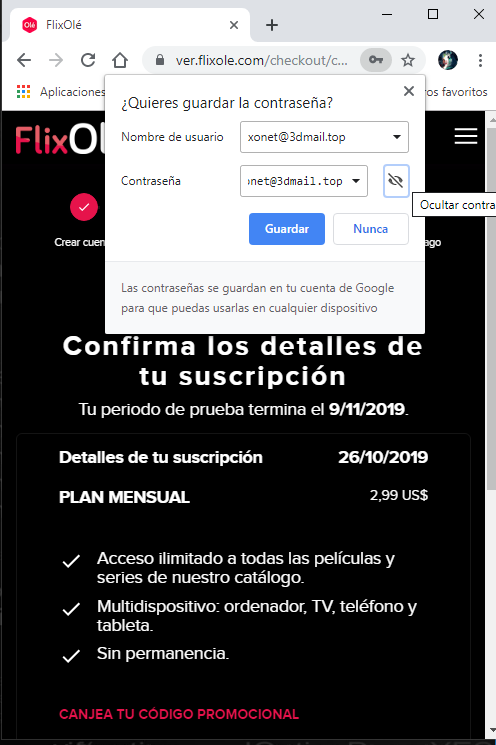 Paso 5: En otra pestaña y abrimos https://flixole.com/ y cramos una cuenta con nuestro correo temporal y usando la misma contraseña. ≪ °° ≫