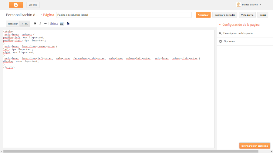 Imagino que sabréis que blogger nos da la oportunidad tanto de crear un blog con una columna lateral (o dos) o ninguna.