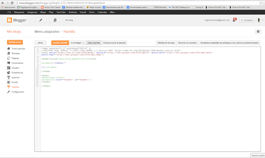 Si te has creado un Blog de pruebas, puedes seguir estos pasos y conseguir tener una idea clara de cómo se genera tu plantilla. Si no lo has hecho, puedes leer los pasos para entender cada punto con especial énfasis en el que se explica el código de la plantilla.
