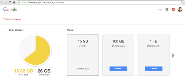 Almacenamiento ilimitado. El almacenamiento siempre suele ser un dolor de cabeza para muchos que adquieren computadoras con discos duros de 120 GB como la Macbook Air. Con las computadoras de Google no hay problema porque vienen con 100 GB de almacenamiento gratis por 2 años con Google Drive. Allí se pueden almacenar documentos, fotos y videos. Si se necesita más espacio pues no hay problema, se compra 1TB que al mes cuesta $9.99. Además estas laptops vienen con puertos para memorias externas porque la memoria interna es limitada, apenas de 16 GB, pero es más para descargar y subir información a la nube.