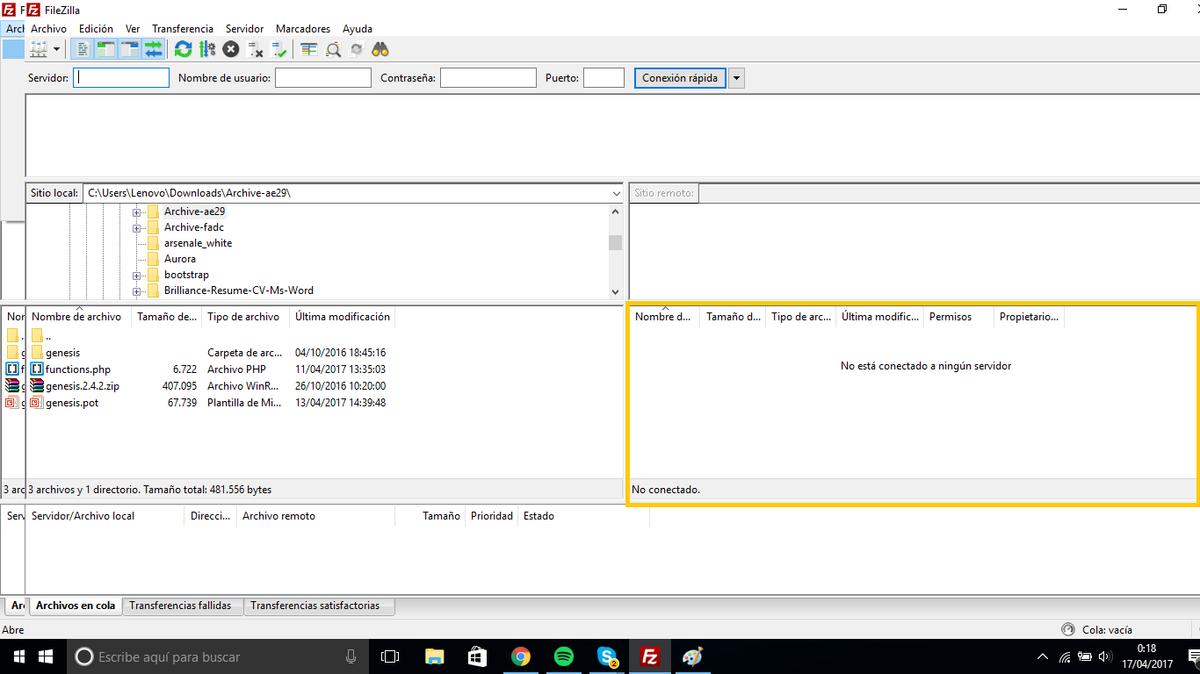 Si ves que no se te genera nada asegúrate de haber introducido bien los datos y en el caso de ser así habla con la empresa con la que tienes contratada el hosting, ya que en algunas ocasiones empresas como Raiola bloquean tu ip y no puedes acceder por FTP a tu hosting.