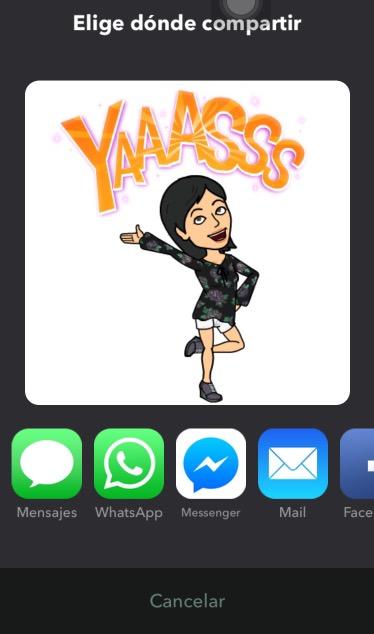 Se trata de Bitmoji, una App que fusionas con Snapchat y creas tu propio emoji que lo usas como stickers y lo puedes compartir con todos.