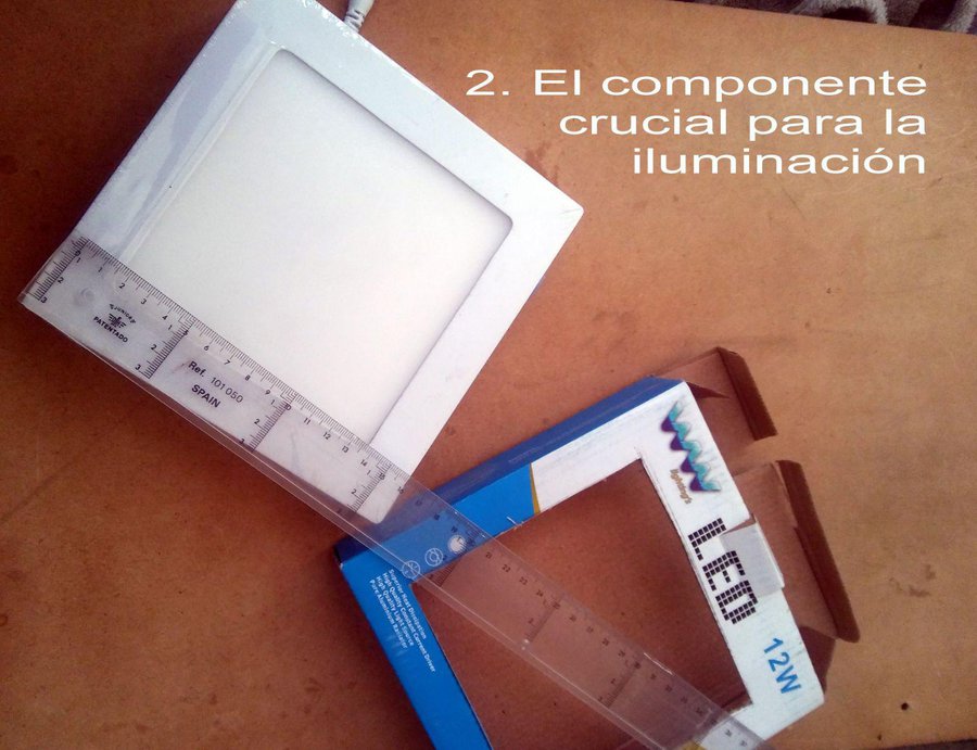 2. Una fuente de iluminación difusa, de color "frío" tipo LED, a la cual se puede acceder en cualquier tienda especializada. La que yo empleo me costó menos de 15 euros, incluyendo una simple conexión con un cable y enchufe corrientes. Definitivamente, la iluminación lo más difusa posible, es el elemento clave, que hace la diferencia entre el éxito y el fracaso. Se debe evitar absolutamente las fuentes de iluminación con tono de color cálido -como de las bombillas de tungsteno-, porque al invertir los colores de una película negativa, resultan en imágenes con una fuerte dominante azul, difícil y aveces imposible de corregir.