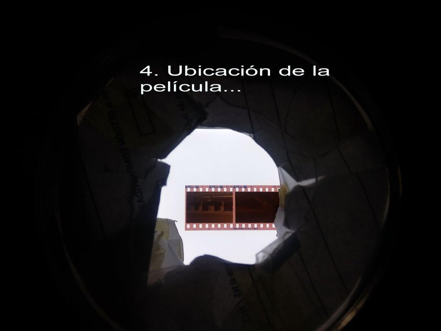 4. Aunque la fuente de iluminación es potente, al punto de hacerse incómoda para la vista durante tiempos prolongados, y permite a la cámara el empleo de velocidades altas de obturación, debe evitarse el movimiento de la cámara. Lo ideal es recurrir al autodisparador (self-timer). Antes de disparar, el objeto debe estar perfectamente encuadrado y enfocado. Ello se logra manipulando el zoom de la cámara. Para que este proceso no sea tan repetitivo, lo ideal es mover o cambiar lateralmente las películas, y no la cámara.