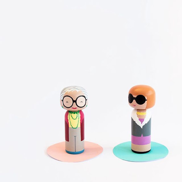 La primera, es una pasada y es la cuenta de la ilustradora inglesa Becky Kemp. Entre otras cosas, utiliza las figuras de Kokeshi, y las personaliza. En su cuenta puedes ver un montón de personajes conocidos en forma de muñecos, y te puedo asegurar que puedes identificar a cada uno de ellos sin que te lo diga. Una de las que más me gusta es la de Ana Wintour e Iris Apfel, me parece espectacular.