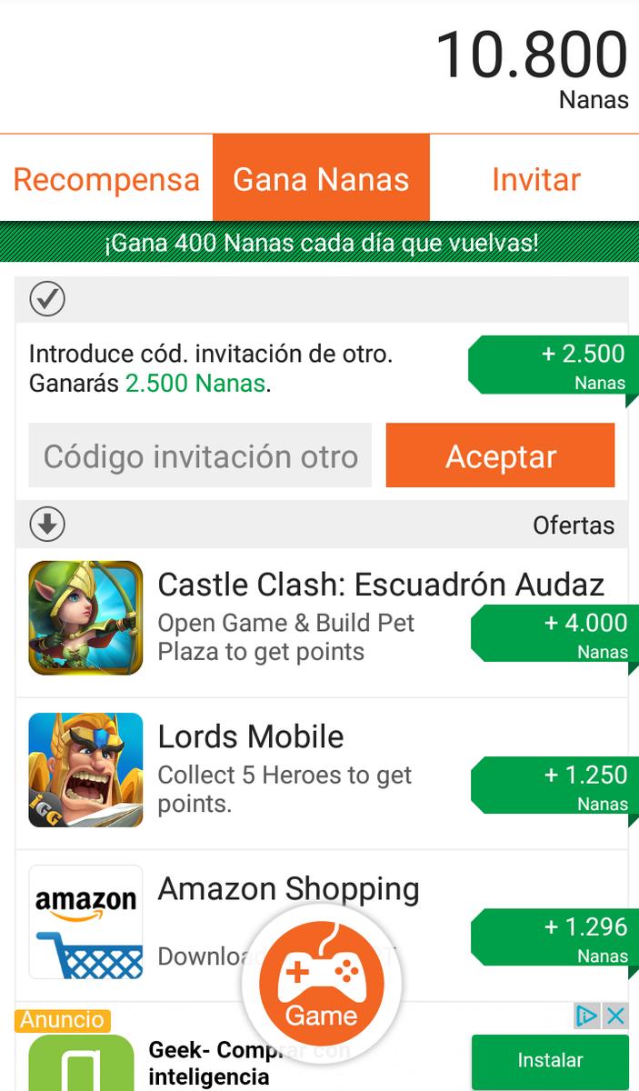 Es muy sencilla y fácil de usar, precisamente eso es lo que más nos gusta de la aplicación. Así, irás acumulando dinero que podrás retirar a través de vales regalo de Amazon, Google Play, Steam o ITunes. El dinero también se puede sacar directamente a tu cuenta Paypal. Además esta App fomenta la participación y se la puedes recomendar a tus amigos; con ello ganarás 2500 nanas. También puedes compartir en redes sociales a cambio de recompensas, por ejemplo, 50 puntos o “nanas” por compatir en Instagram.