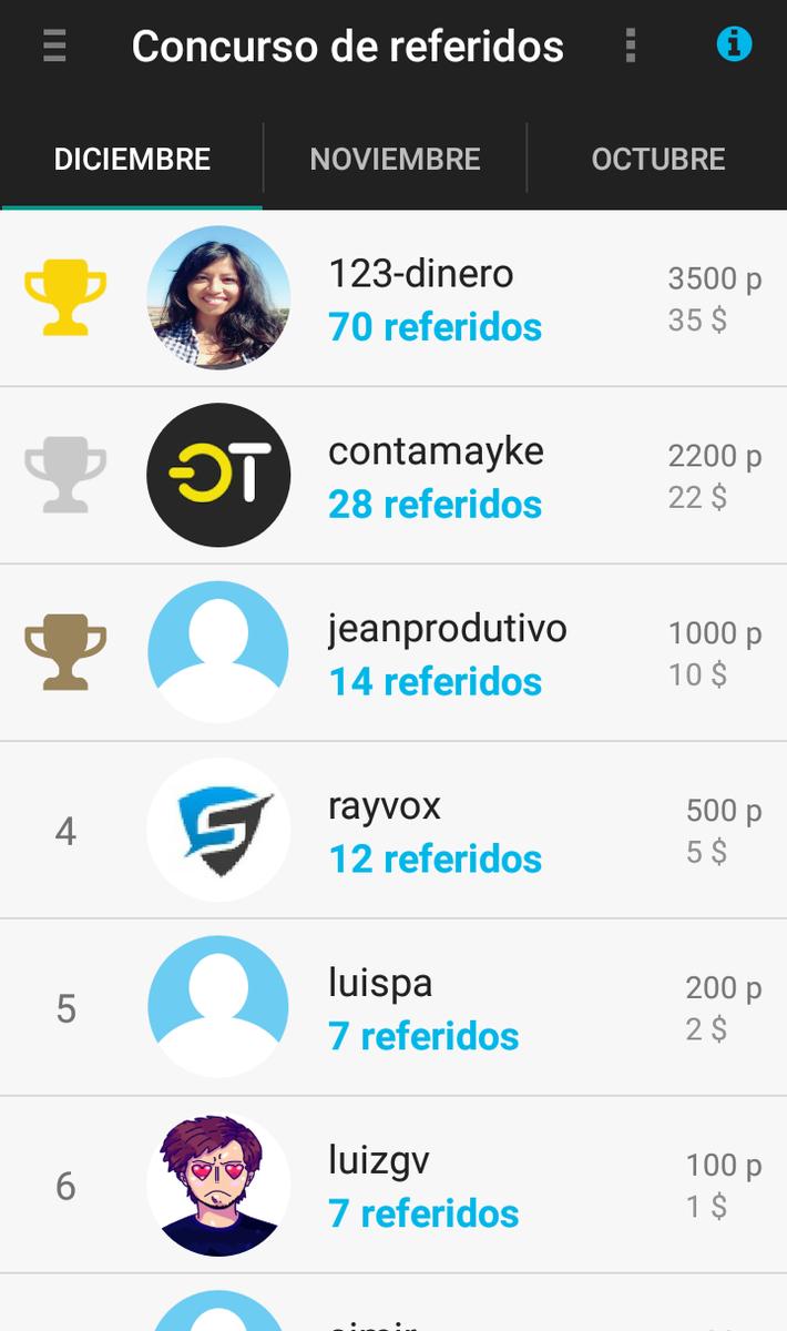 – Concurso de referidos: Premian a las 3 personas que consigan más invitados. Este concurso se realiza cada mes.