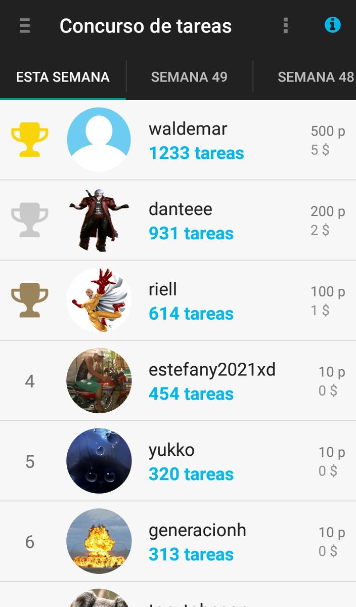 – Concurso de tareas: Aquí premian a las 3 personas que más puntos consigan haciendo tareas. Este concurso se hace semanalmente.