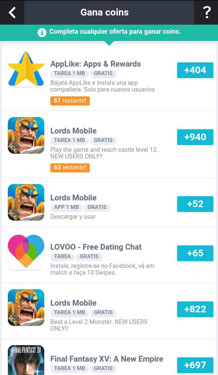 – Muros de ofertas: allí encontrarás tareas de diferentes tipos y ganarás puntos por, por ejemplo, registrarte en alguna web, acceder a diferentes paginas o participar en algún sorteo.