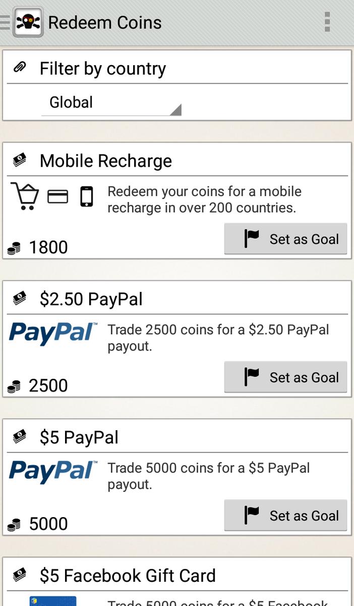 Y con todos estos puntos que acumulas, ¿qué se puede conseguir? Los puntos se transforman en dinero que puedes sacar a través de Paypal. Desde solo 250 puntos ya puedes sacar tu dinero. Si lo prefieres, en lugar de dinero directo puedes obtener tarjetas regalo de Itunes o Amazon.