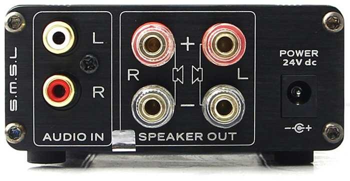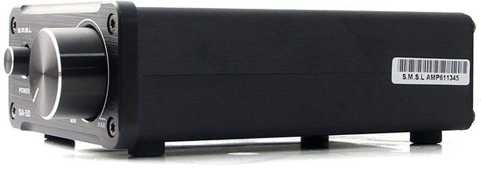 El SMSL SA50 tiene una potencia de salida de 50 vatios por canal que puede entregar hasta 22 vatios a dos altavoces estéreo de 4 ohmios y 19 vatios para altavoces de 8 ohmios.