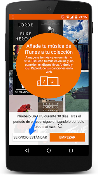 Una vez que tienes la aplicación, selecciona el servicio estándar. Cuidadín no se te vaya el dedo que aquí Google nos quiere hacer un poco el lío y presenta de color el botón para probar el servicio ilimitado y en blanco el servicio estándar.