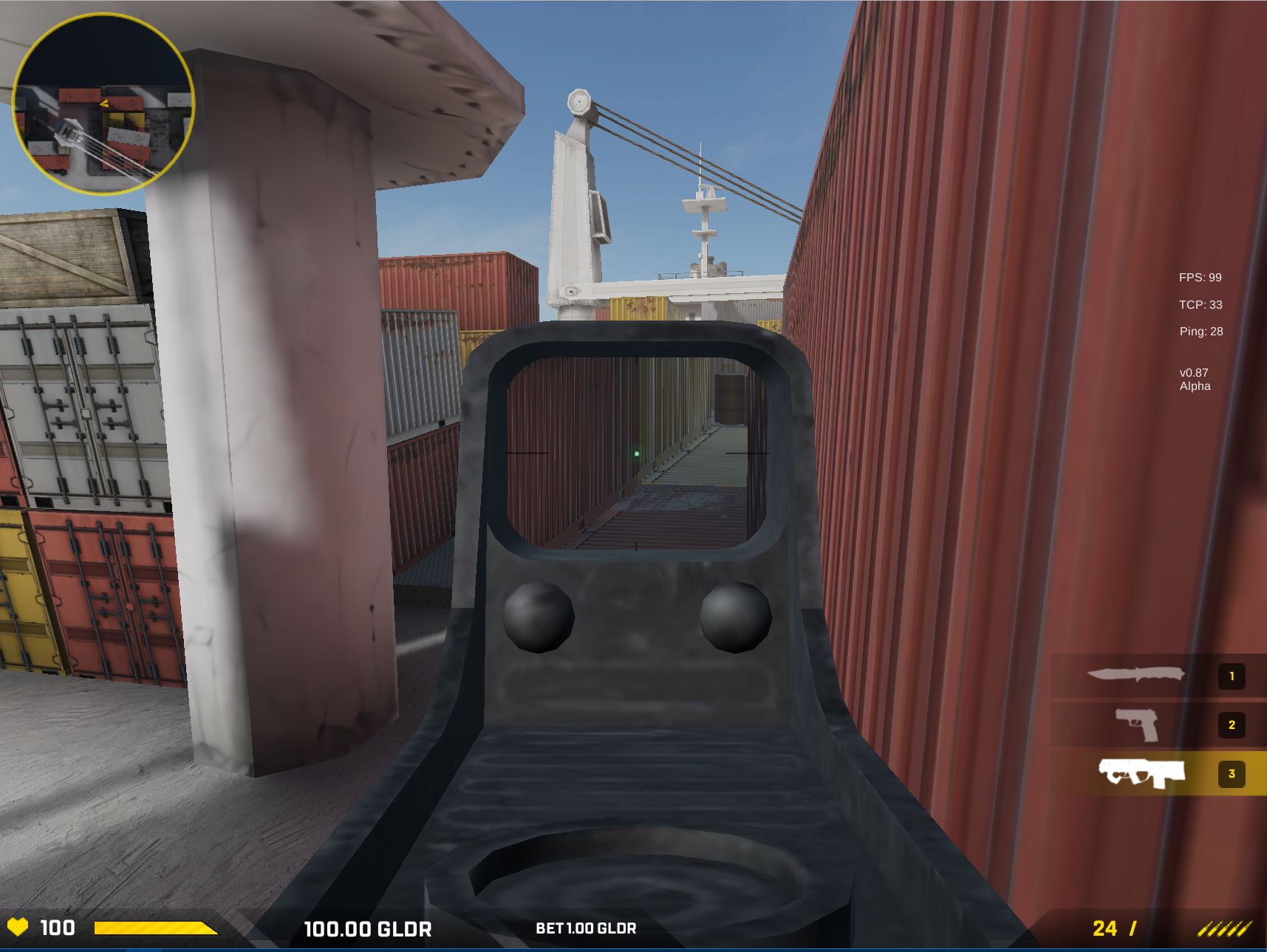 Es un criptojuego online de disparos en primera persona. Se puede jugar desde el navegador Chrome, aunque en poco tiempo podremos descargarnos su client y jugar desde él. El campo de batalla es Mystery Freighter y el jugador principal debe ser rescatado, evitando que lo hieran o lo maten, mientras intenta herir o matar al resto de participantes. De esta forma consigue sus monedas (GLDR). La economía del juego permite a los usuarios comprar munición, armas, armaduras; personalizar la apariencia de los personajes o pagar las tarifas para participar en los torneos y eventos del juego, mediante los tokens de Ethereum.