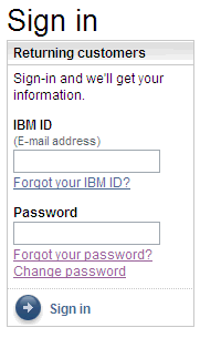 Después de registrarse, volverá a la página "Iniciar sesión". Esta vez rellene el formulario de la izquierda ("Clientes registrados") con el ID de IBM (dirección de correo electrónico) y la contraseña que acaba de crear y haga clic en "Iniciar sesión".
