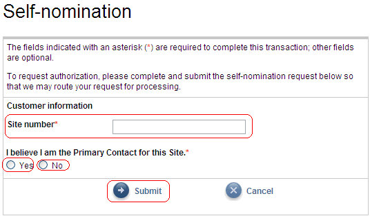 Ahora será redirigido a la página "Auto-nombramiento". Introduzca el "Número de situación" de su licencia y seleccione "Sí, creo que soy el contacto principal de este sitio".