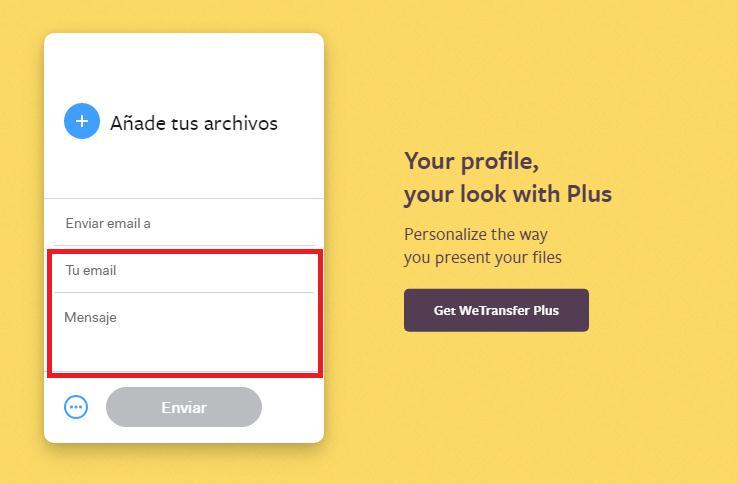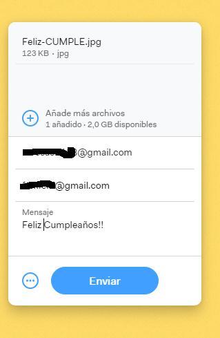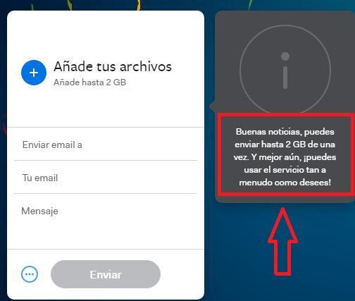 Nota importante: Aunque solo puedes enviar 2Gb puedes usar el servicio las veces que desees. Al pasar el cursor por donde dice “Añade tus archivos” aparecerá el siguiente mensaje: