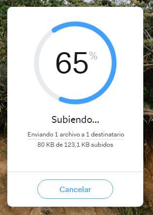 Una vez proceda a enviar el archivo, comenzará a cargar un porcentaje iniciando desde Cero hasta llegar a 100% donde su mensaje se enviará. Ejemplo de cómo carga el porcentaje.