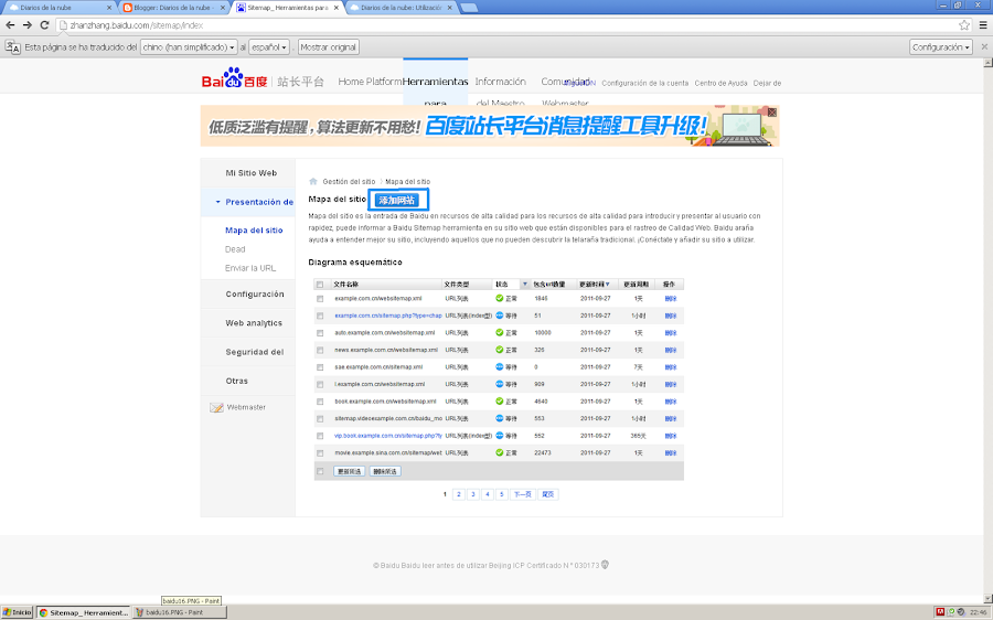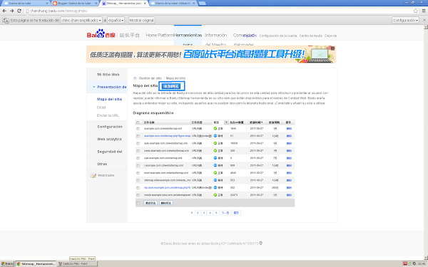 ¡Eso es todo!, ahora ya puedes añadir tu "sitemap.xml" para a continuación meterte en la opción "rastreo" de manera que en cuestión de días los robots de Baidu visiten tu sitio web y lo añadan al índice del buscador chino.