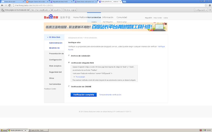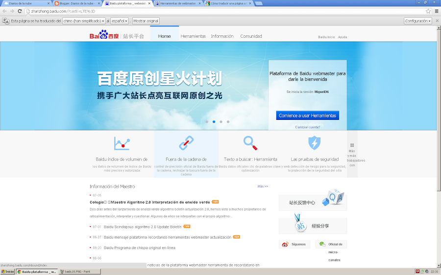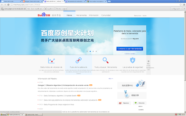 Para seguir los pasos utiliza Google Chrome pues va a ser necesario utilizar su tecnología de traducción para poder utilizar las herramientas de webmaster sin saber chino.