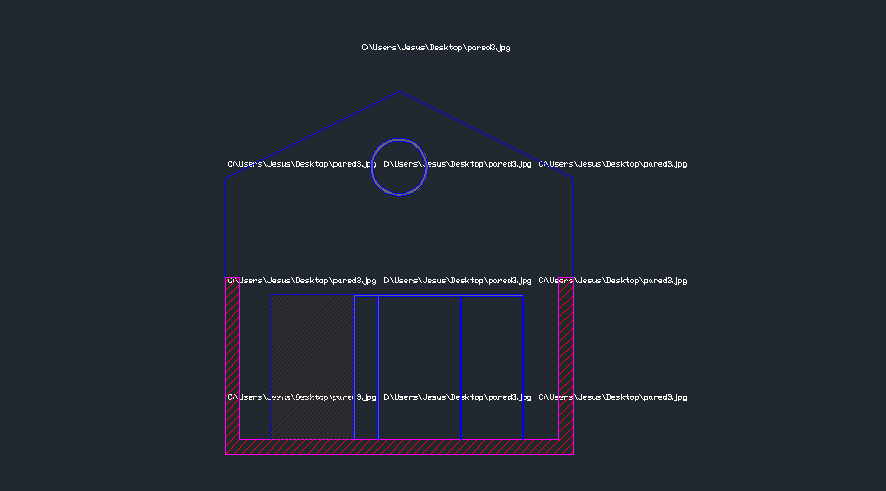 Al insertar una imagen en Autocad crees que has insertado la imagen como tal en el dibujo, pero en realidad lo que has insertado ha sido un enlace con la ruta donde se encuentra guardada la imagen, es decir, si cambias la imagen de carpeta o lugar donde la tenias almacenada, automáticamente la imagen desaparece del archivo de Autocad donde la insertaste, ya que Autocad no reconoce la nueva ruta donde la moviste. En el dibujo de Autocad aparecerá algo así:
