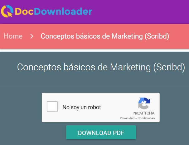 Ingresa a docdownloader.com y sigue el mismo procedimiento que realizaste con Dlscrib.