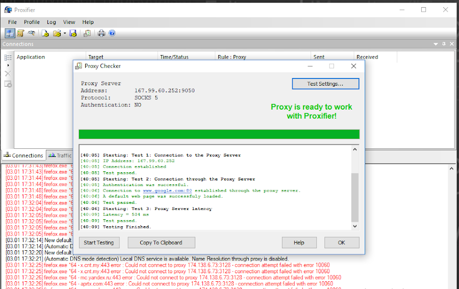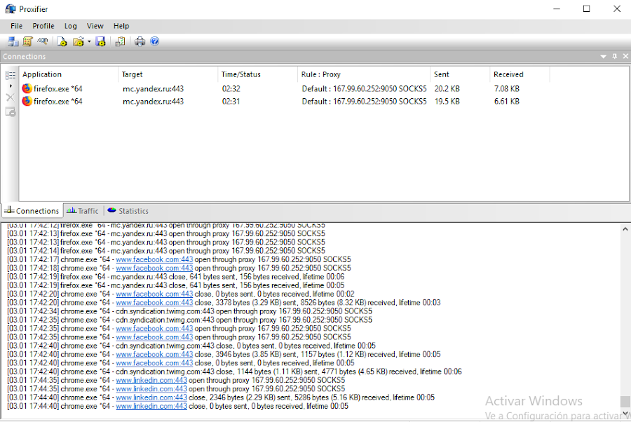 Los mensajes de registro de Proxifier ahora son más detallados, incluidos todos los nuevos parámetros enumerados anteriormente.