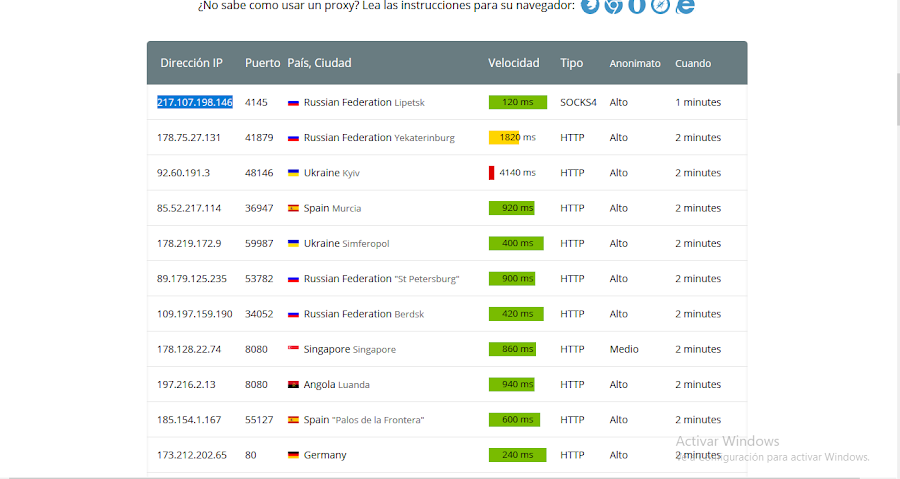 conexiones para trabajar a través de un servidor proxy).