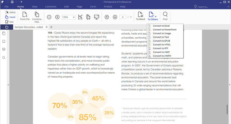 Sin duda, es otra opción aconsejable. Se trata de un editor de PDF muy potente, fácil de utilizar y con una interfaz atractiva. Contiene tecnología ConnectedPDF de última generación y estas son algunas de las ventajas que puedes disfrutar si decides utilizarlo: