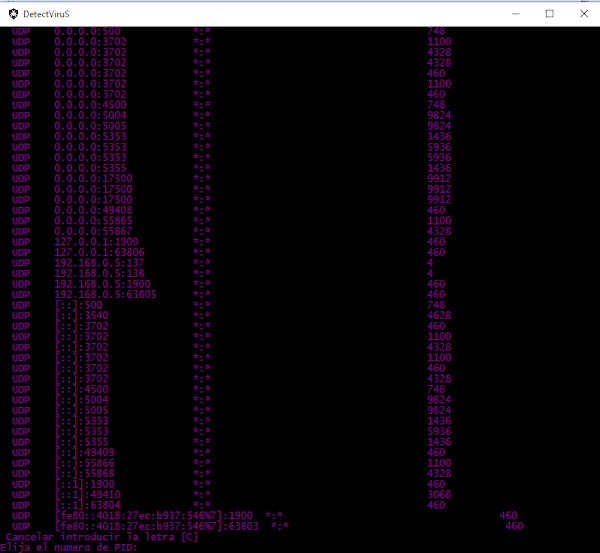 En fin, que podemos permutar las letras de los modificadores a nuestro gusto. Ahora toca interpretar los resultados de netstat, una sálida típica de este comando introduciendo los parámetro “-ano” sería Proto Dirección local Dirección remota Estado P