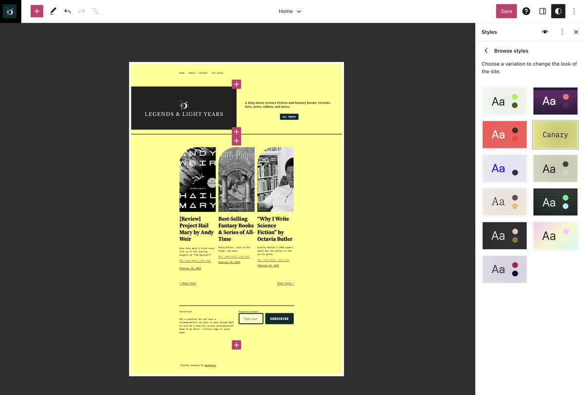 Desde las opciones básicas como los colores o la tipografía hasta parámetros más avanzados como las dimensiones del contenido, el relleno y los ajustes específicos de los bloques, nuestras personalizaciones de estilo te resultarán muy útiles, independientemente de tu nivel de experiencia en diseño (e incluso si no tienes ninguna noción al respecto).Aunque algunos temas vienen con variaciones de estilo que puedes probar, el uso de estilos personalizados te da aún más libertad y flexibilidad para experimentar y jugar con varias piezas del diseño.