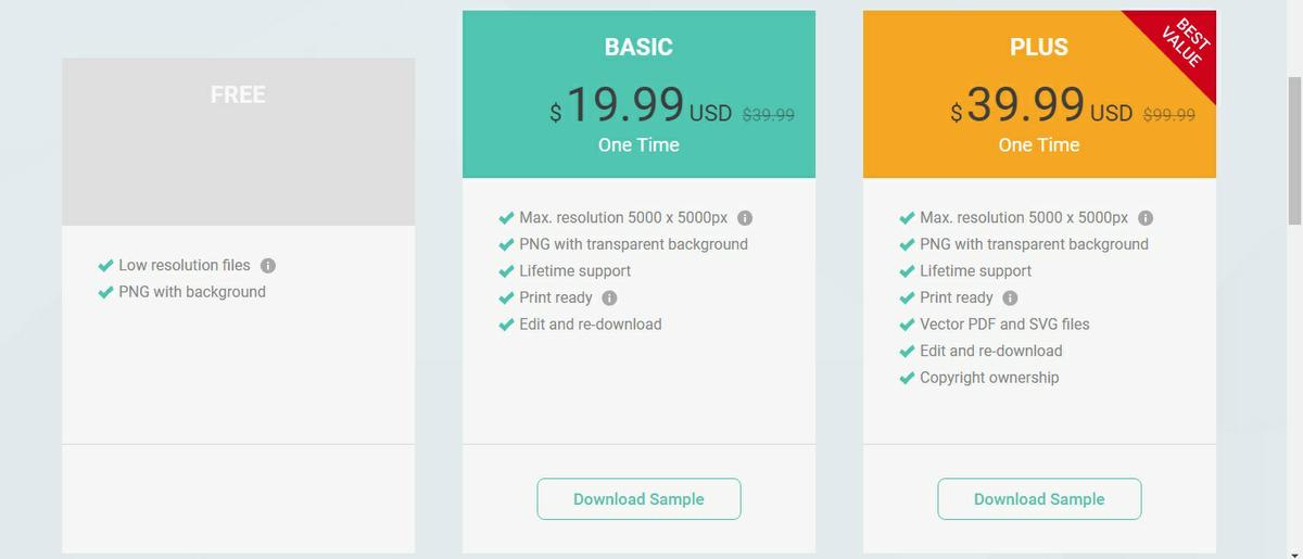 Si creaste tu logotipo gratis, podrás descargar tu creación pero sólo en formato imagen y con tamaño de 500 x 500 px. Aquí es donde se aprovecha la ventaja de tener una cuenta y desembolsar un pago si deseas tener tus logos a máxima resolución y en vector.