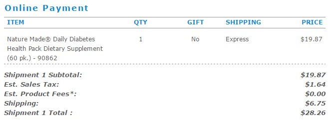 I bought the Nature Made Daily Diabetes Health Pack online at Sams Club