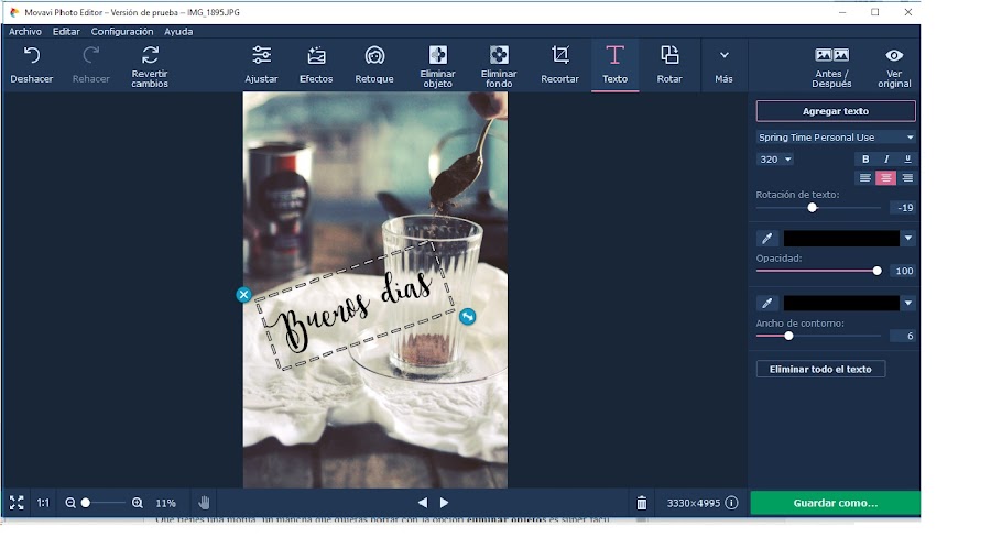 Poner textos divertidos es también muy sencillo, todas las tipografías que tengas descargadas las tienes en el programa, puedes voltear, cambiar el tamaño, ajustar el texto, que tenga más o menos volumen. Una gozada