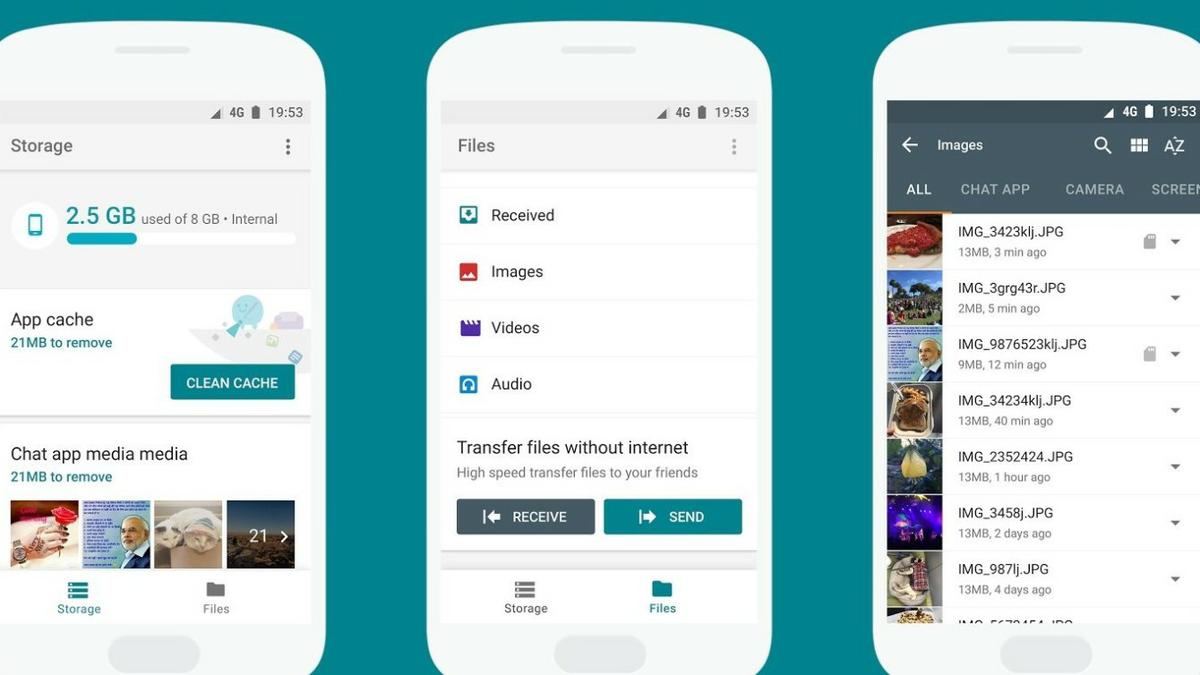 Dicha app es un gestor de almacenamiento inteligente para mantener organizado y limpio nuestro Android, por lo que su principal función es analizar todos los archivos y aplicaciones del dispositivo con el fin de liberar espacio. A través de tarjetas inteligentes, y de consejos, informará que archivos se pueden eliminar. También permitirá compartir archivos sin Internet de forma sencilla usando el Bluetooth.