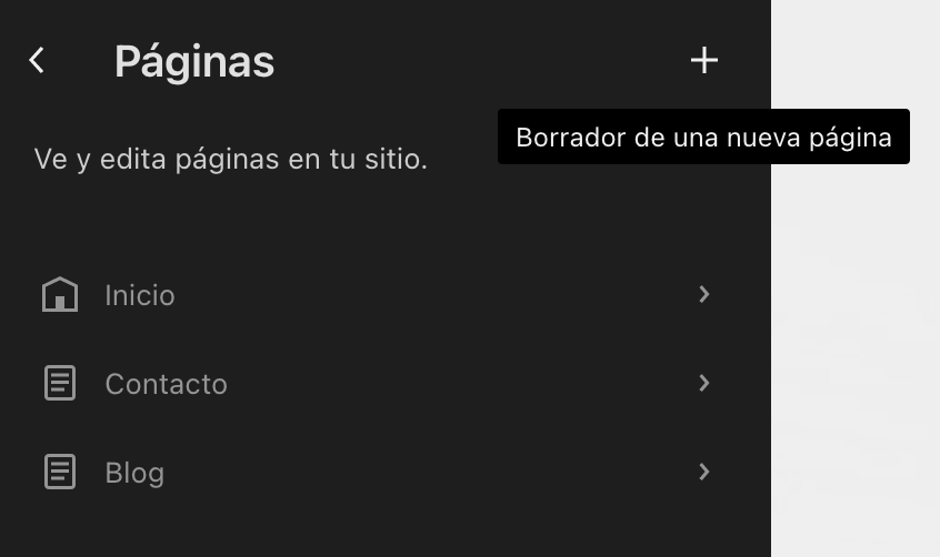 Ahora también puedes acceder a las páginas desde el editor del sitio, por si quieres añadir una página nueva o editar algún contenido. Al hacer clic en una página en el editor del sitio verás algunos datos en la parte izquierda (fecha de publicación, recuento de palabras, tiempo de lectura, etc.) y la página en sí a la derecha.