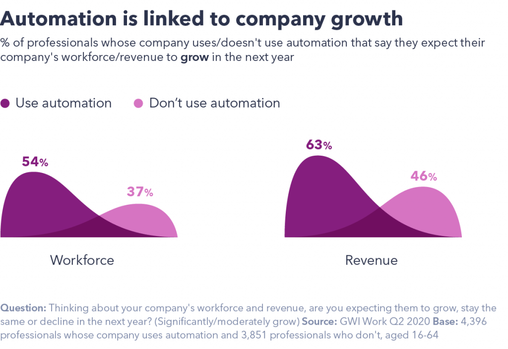 Existen sectores que han agilizado la inclusión de este tipo de tecnología, Global Web Index presenta una lista según el uso que hacen de la inteligencia artificial y la automatización.