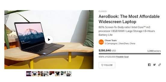 Hace unos meses, Chuwi lanzó una campaña en Indiegogo para el Chuwi AeroBook. Un ordenador portátil panorámico “full view”, que logró unos resultados notables durante su campaña de crowdfunding, respaldada por más de 1348 patrocinadores y con una tasa de finalización del 956%. Esta es la primera vez que Chuwi consigue unos resultados tan buenos en la recaudación de fondos para el desarrollo de un portátil, lo cual demuestra el interés por parte del público de cara a esta nueva propuesta del fabricante asiático.