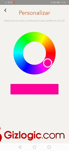 Aunque se venda en tiendas Apple, funciona perfectamente con Android. Desde la app de nuestro móvil podemos controlar el color de la luz LED y la temperatura exacta a la que queremos nuestra bebida. Podemos seleccionarla manualmente o elegir algunos de los filtros preestablecidos. Por ejemplo, para el café nos recomienda 57º y para el té verde 59º.