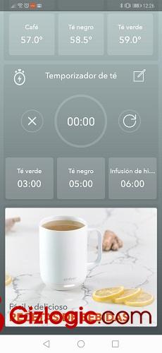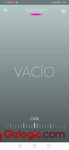 Pero sin duda lo que me ha parecido más interesante y a lo que más partido he sacado es a la opción de conocer exactamente la temperatura a la que se encuentra nuestra bebida y decidir a cuántos grados queremos mantenerla. Si abrimos la app sin ninguna bebida, detecta que la taza está vacía, en el momento en que le añadimos el líquido nos indica si está frío o si ha alcanzado alguna temperatura.