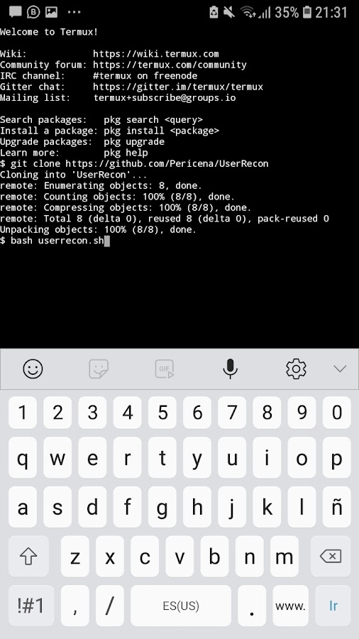 UserRecon es básicamente un script de shell, no hay archivos binarios involucrados, por lo que simplemente puede descargar el script de origen desde el repositorio oficial en Github con la línea de comandos (o simplemente descargar el archivo y colocarlo en algún lugar):