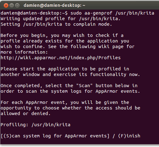 sudo aa-genprof /path/to/application