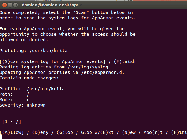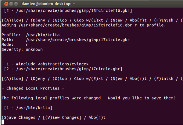 AppArmor escaneará las entradas del registro y le permitirá realizar cambios en el perfil.