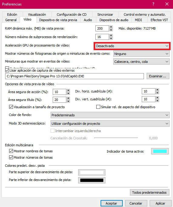 Aplicamos los cambios y reiniciamos el Sony Vegas.