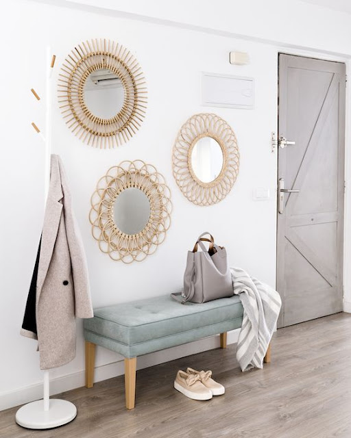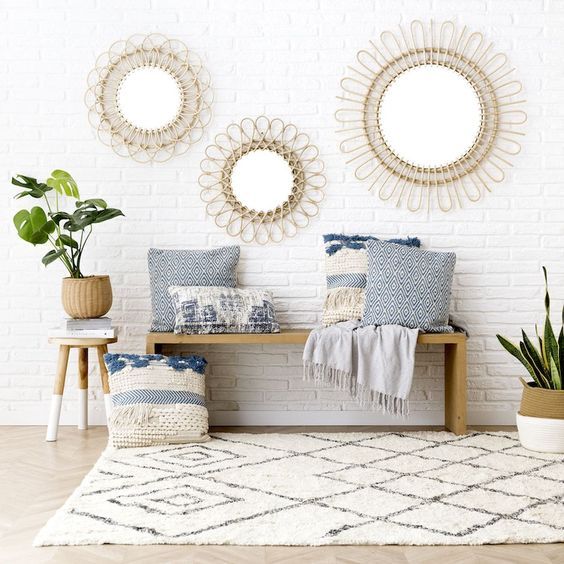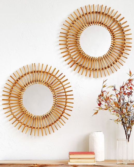 Estos espejos en forma de sol y realizados en ratán son ideales para colocar casi en cualquier estancia, como vemos en la imágenes superiores dan un toque artesanal que nos encanta. Funcionan a la perfección la combinación de varios modelos y si son del mismo material queda una combinación más armoniosa.