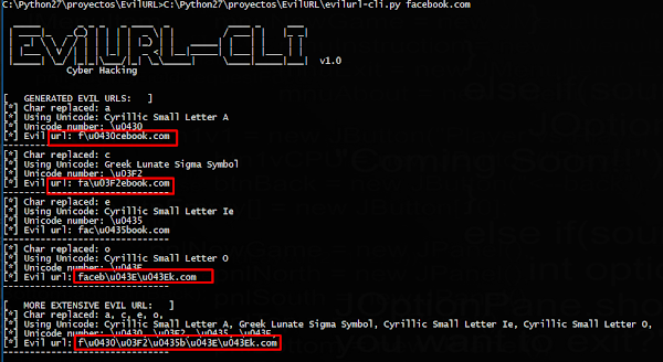 Mediante la herramienta EvilURL, escrita en Python por UndeadSec, es posible generar fácilmente dominios maliciosos unicode para realizar ataques homográficos IDN y también detectarlos.